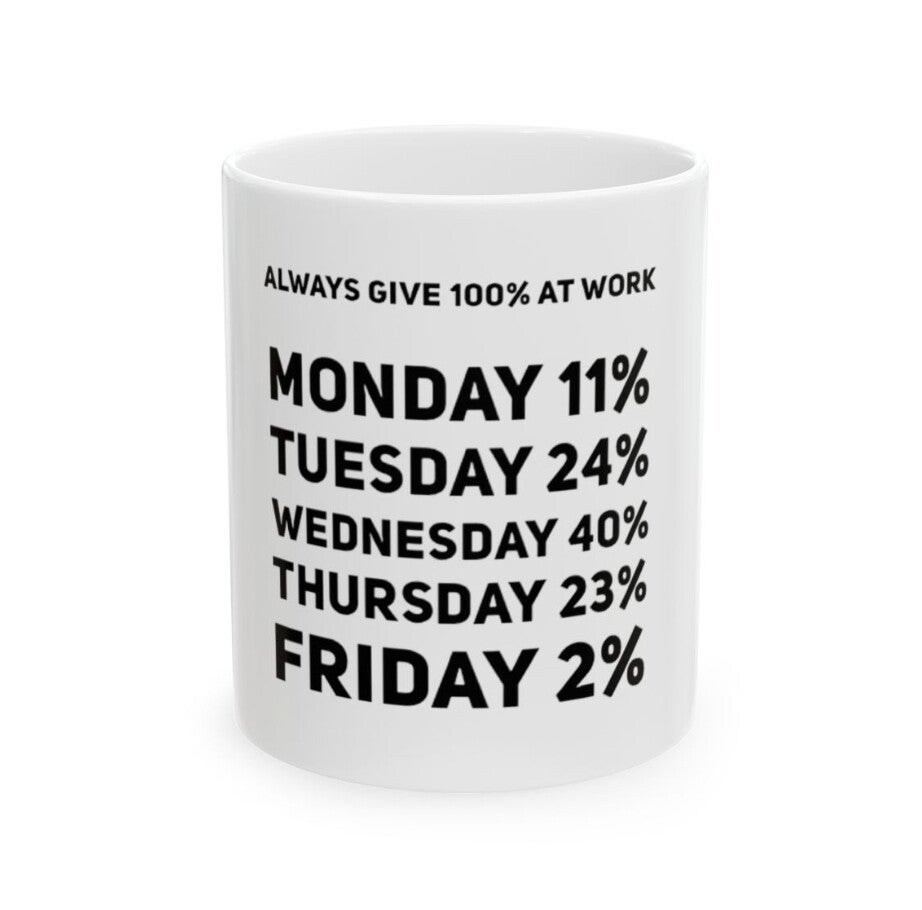 Motivational Ceramic Mug - "Always Give 100% at Work" - Funny Coffee Cup
