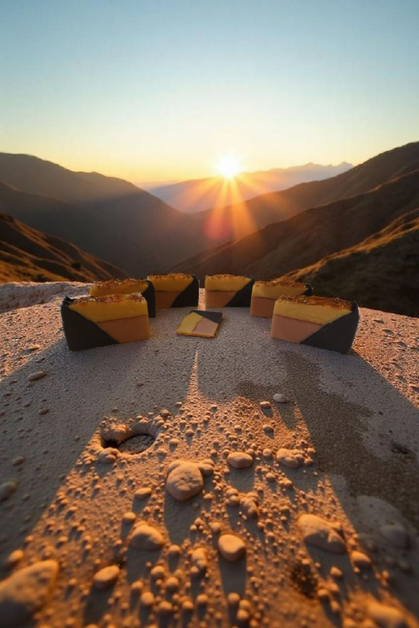 Introducing Sand & Sun Soap — a warm and radiant bar inspired by the beauty of a Sahara sunrise. This handmade soap features a stunning blend of brown, orange, and mango-yellow hues, evoking the glowing sands kissed by morning light.