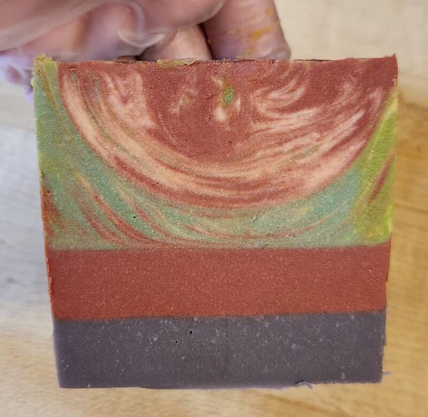 Naturally colored with mica powders for a beautiful, vibrant finish, this soap is scented with irresistible notes of sweet orange, juicy strawberry, and tropical mango—a bright, fruity aroma that feels like a burst of sunshine with every use.