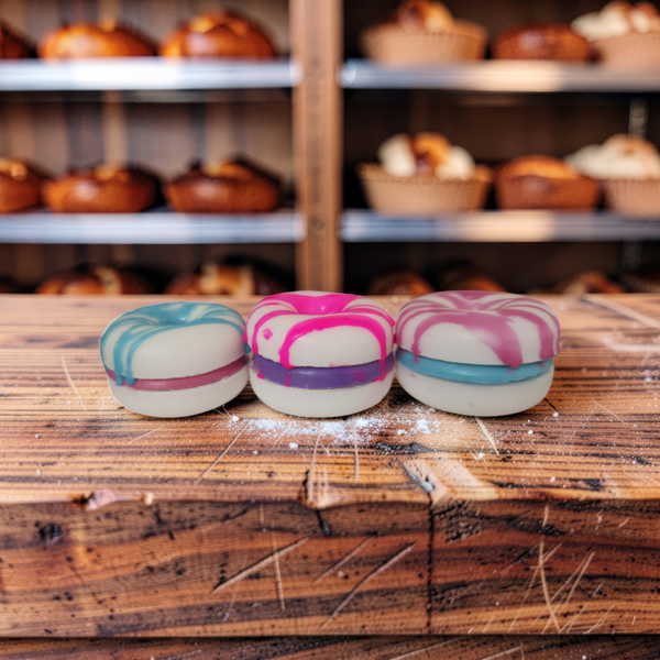 These cutely colored Donut Bagel Soaps are almost too adorable to use! Handmade with a luxurious triple butter base, they’re rich, creamy, and gentle on your skin. Each one is crafted with vibrant, playful colors that make your sink or shower look extra sweet and fun.