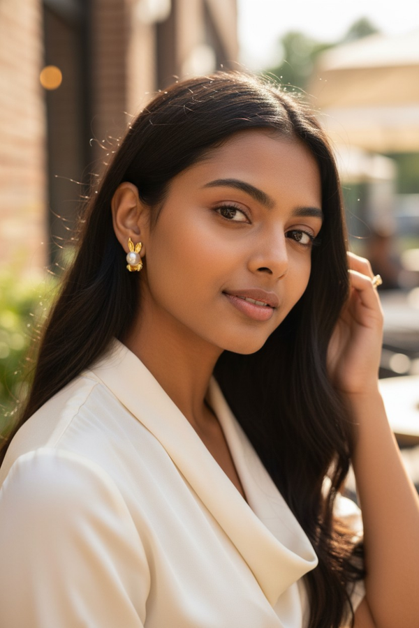 The delicate bunny silhouette peeks sweetly from behind your ear, creating a playful yet classy layered effect. The pearl stud sits beautifully on the front, while the gold bunny detail frames the bottom for a unique, eye-catching finish.
