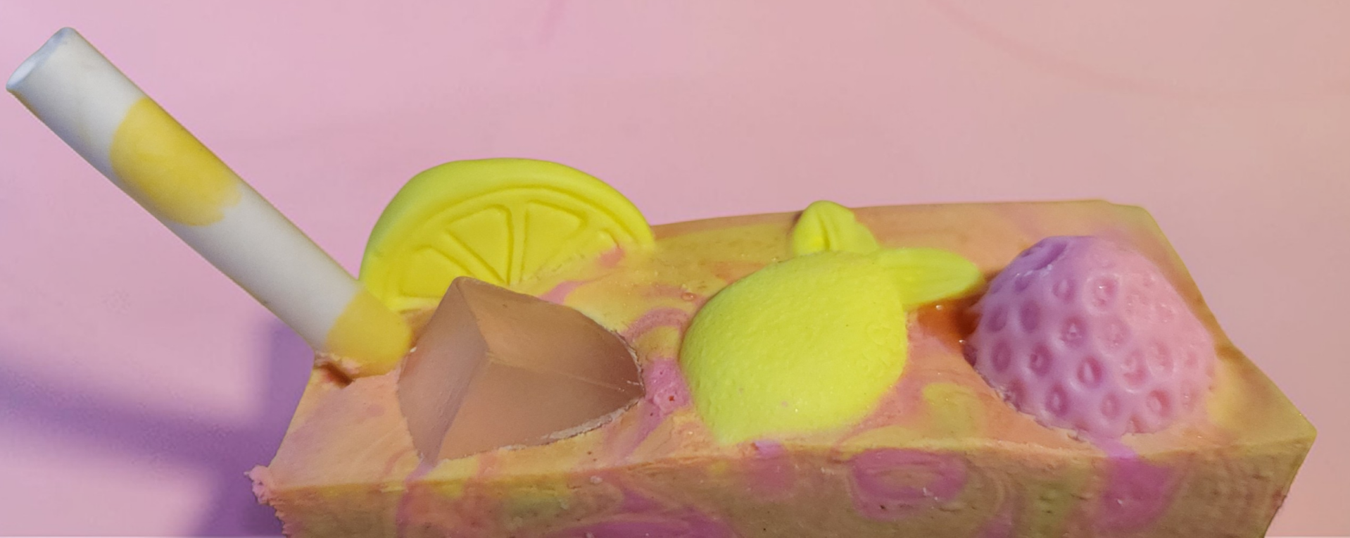 Each bar weighs approximately 6.20 oz and is topped with adorable melt & pour “ice cubes,” realistic lemon and strawberry slices, and even a tiny lemonade straw for that extra fun, eye-catching touch. It’s almost too cute to use… almost!